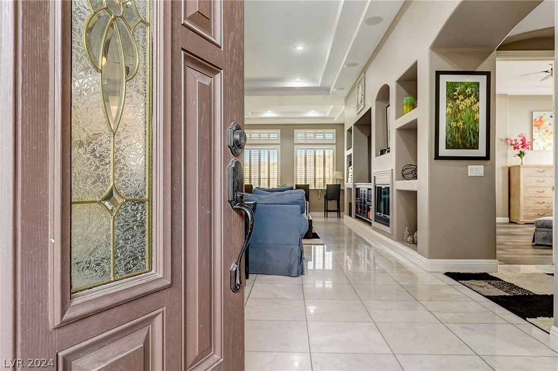 Discover the epitome of luxury living in this 1-story residence nestled in the prestigious Southern Highlands gated community of Bella Sera. You are greeted by an intimate courtyard & custom doors. Once inside you'll find an open floor plan adorned with 12-ft ceilings.Inside the Great Room is a built-in entertainment center, cozy fireplace & sunken wet bar.The residence also features an elegant dining room, den & custom kitchen which boasts a marble island/countertops, breakfast bar, stainless steel appliances & walk-in pantry.The primary suite is a sanctuary of relaxation, offering an independent Jacuzzi tub, walk-in shower & dual vanities with makeup table.2 additional bedrooms share a spacious bathroom, while an oversized laundry room adds convenience.Outside is an oasis complete with a custom BBQ area, solar heated pool, spa & a soothing water feature alongside unparalleled sunset vistas & panoramic mountain views. Experience luxury living at its finest in this remarkable residence