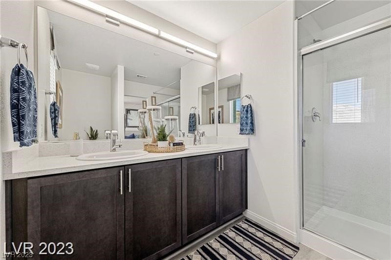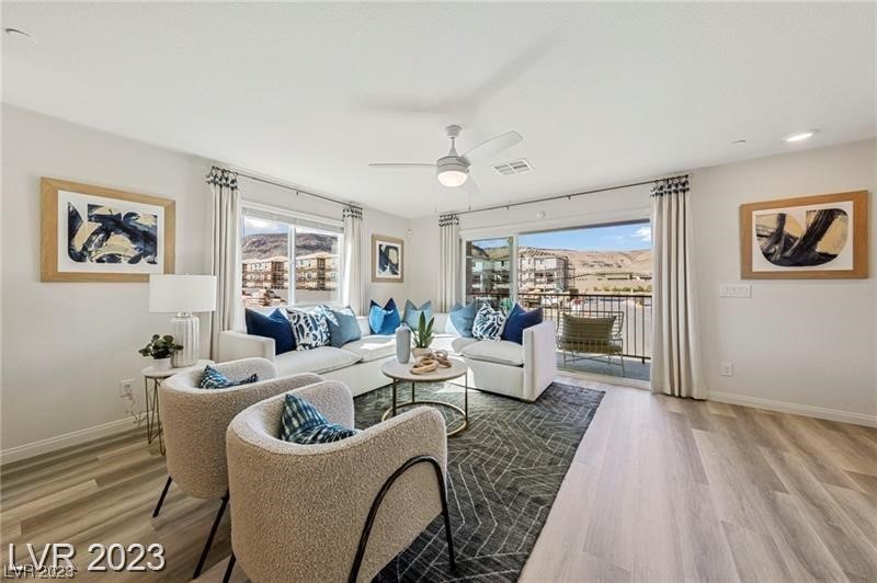 STOP RENTING & take advantage of incredible builder incentives! 30 YEAR RATES AT 5.99% All closing costs paid. Tesla Solar Panels Included & 220 AMP outlet! All appliances, blinds, ceiling fans and finished backyard w/ patio. This beautiful home offers 1764 sq.ft. of living space with exceptional finishes throughout! Welcoming entry leads into a spacious bonus room for private office, a gym, or den. Mid floor boasts an oversized great room w/ open dinning & kitchen. You will love the stainless-steel appliances, quartz countertops, crisp cabinetry & upgraded water resistant vinyl flooring. Primary suite has a large walk in closet & plush carpeting. 2 car garage that allows for roof racks & storage. LOW MAINTENANCE ENERGY EFFICIENT lifestyle. HOA, includes- Private gated community, Cox Cable & high speed Gigablast Internet Service, community pool, & friendly Dog Park. Just minutes from Downtown Summerlin, and the new upcoming Durango Station. EZ freeway & airport access. Must see!